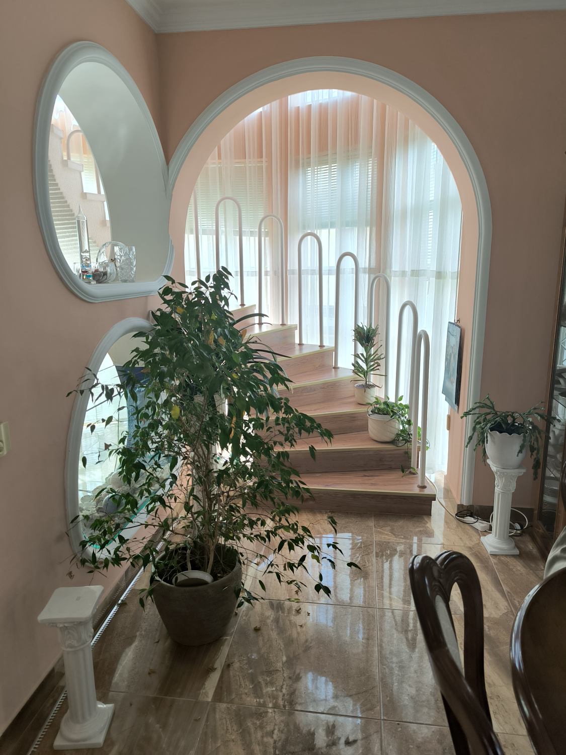 Az alsó szint spanyol márványlappal burkolt, a szobák padlózatát laminált lappal fedték.